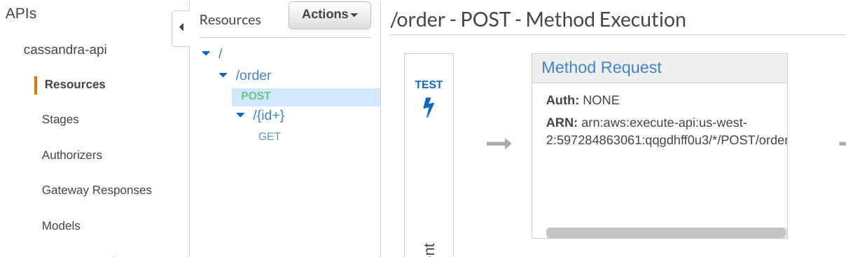 Now test your POST a few times. Keep track of one value for order_id uuid as you will need it in a moment. Did you notice the first invocation took longer (maybe a few seconds), while other invocations took a few milliseconds? That’s because at the first invocation, there is some overhead: