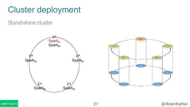 - 27. @doanduyhai Cluster deployment C* SparkM SparkW C* SparkW C* SparkW C* SparkW C* SparkW Stand-alone cluster 27