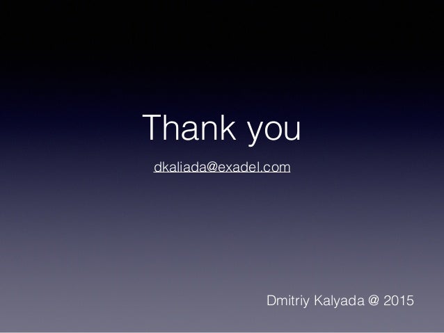 - 16. Thank you dkaliada@exadel.com Dmitriy Kalyada @ 2015