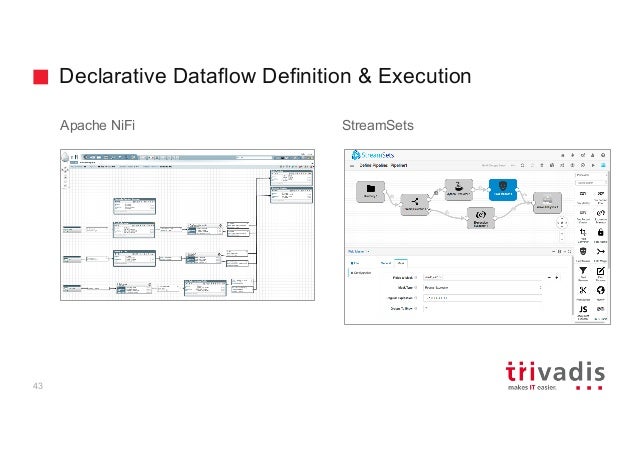 - 34. Declarative Dataflow Definition & Execution 43 Apache NiFi StreamSets