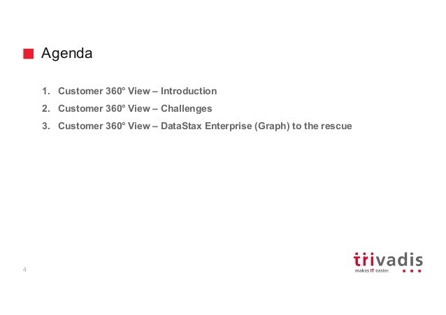 - 4. Agenda 4 1. Customer 360° View – Introduction 2. Customer 360° View – Challenges 3. Customer 360° View – DataStax Enterprise (Graph) to the rescue
