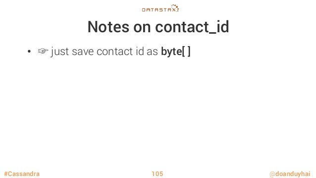 - 105. #Cassandra @doanduyhai Notes on contact_id • ☞ just save contact id as byte[ ] 105