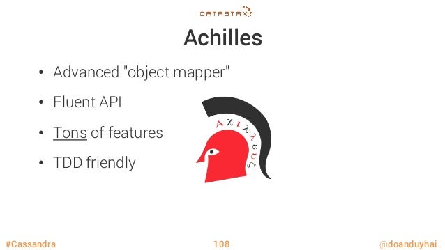 - 108. #Cassandra @doanduyhai Achilles • Advanced "object mapper" • Fluent API • Tons of features • TDD friendly 108