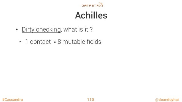 - 110. #Cassandra @doanduyhai Achilles • Dirty checking, what is it ? • 1 contact ≈ 8 mutable fields 110