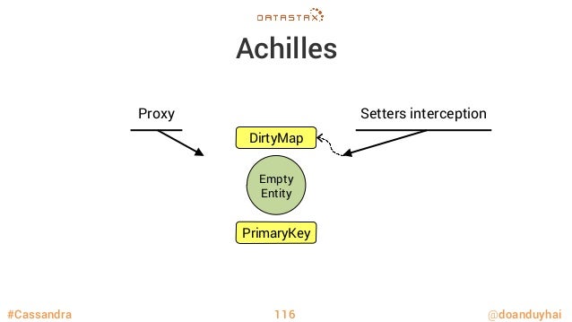 - 116. #Cassandra @doanduyhai Achilles 116 Empty Entity DirtyMap Proxy Setters interception PrimaryKey