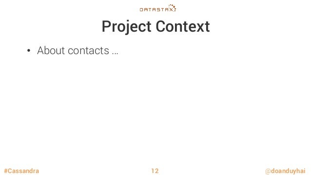 - 12. #Cassandra @doanduyhai Project Context • About contacts … 12