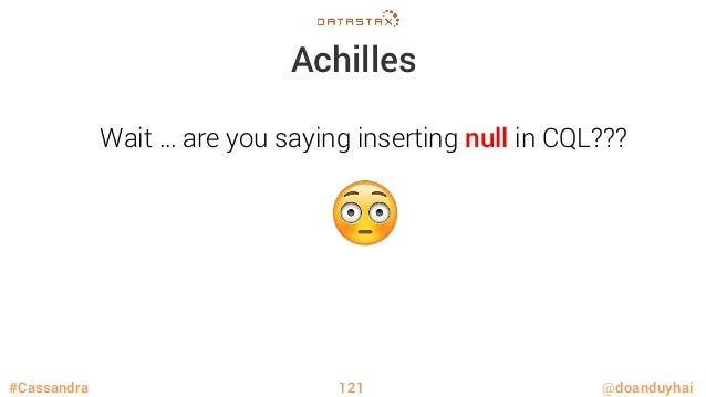 - 121. #Cassandra @doanduyhai Achilles 121 Wait … are you saying inserting null in CQL??? ????