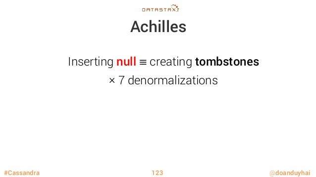 - 123. #Cassandra @doanduyhai Achilles 123 Inserting null creating tombstones × 7 denormalizations