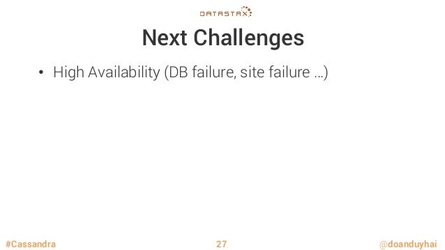 - 27. #Cassandra @doanduyhai Next Challenges • High Availability (DB failure, site failure …) 27