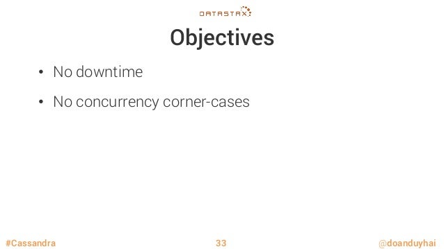 - 33. #Cassandra @doanduyhai Objectives • No downtime • No concurrency corner-cases 33