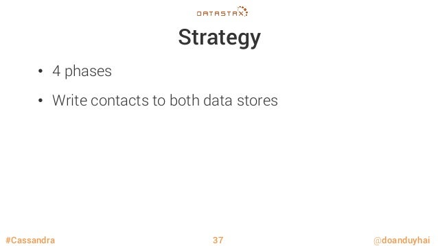- 37. #Cassandra @doanduyhai Strategy • 4 phases • Write contacts to both data stores 37