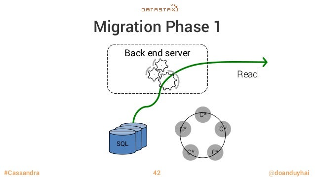 - 42. #Cassandra @doanduyhai Migration Phase 1 42 Back end server · · · SQLSQLSQL C* C* C* C* C* Read