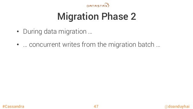 - 47. #Cassandra @doanduyhai Migration Phase 2 • During data migration … • … concurrent writes from the migration batch … 47