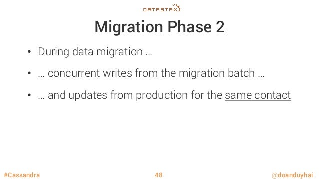 - 48. #Cassandra @doanduyhai Migration Phase 2 • During data migration … • … concurrent writes from the migration batch … • … and updates from production for the same contact 48