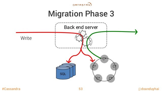 - 53. #Cassandra @doanduyhai Migration Phase 3 53 Back end server · · · SQLSQLSQL C* C* C* C* C* Write