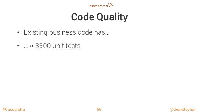 - 65. #Cassandra @doanduyhai Code Quality • Existing business code has… • … ≈ 3500 unit tests 65