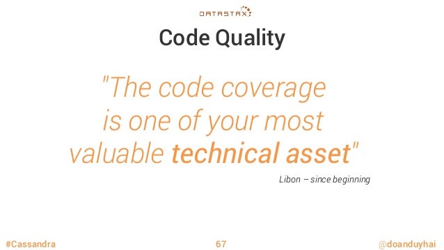 - 67. #Cassandra @doanduyhai Code Quality 67 "The code coverage is one of your most valuable technical asset" Libon – since beginning