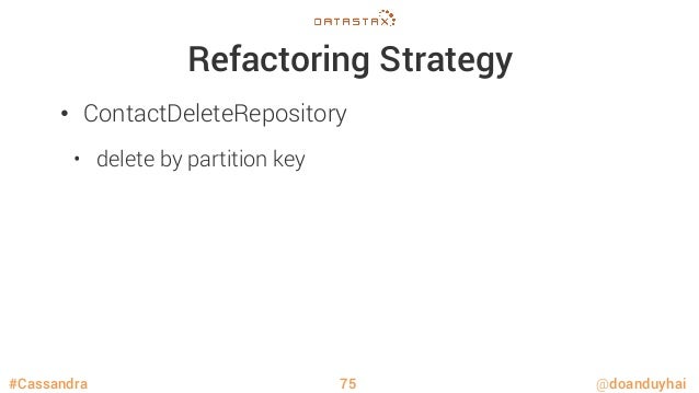 - 75. #Cassandra @doanduyhai Refactoring Strategy • ContactDeleteRepository • delete by partition key 75
