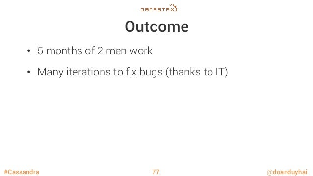- 76. #Cassandra @doanduyhai Outcome • 5 months of 2 men work 76
