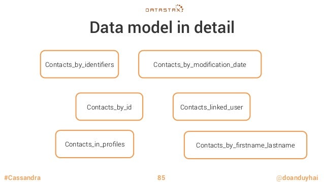 - 85. #Cassandra @doanduyhai Data model in detail 85 Contacts_by_id Contacts_by_identifiers Contacts_in_profiles Contacts_by_modification_date Contacts_by_firstname_lastname Contacts_linked_user