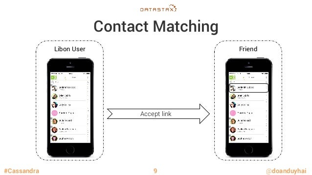 - 9. #Cassandra @doanduyhai Contact Matching 9 Libon User Friend Accept link