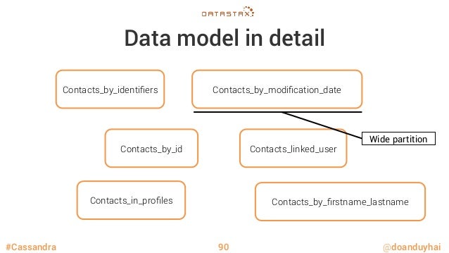 - 90. #Cassandra @doanduyhai Data model in detail 90 Contacts_by_id Contacts_by_identifiers Contacts_in_profiles Contacts_by_modification_date Contacts_by_firstname_lastname Contacts_linked_user Wide partition