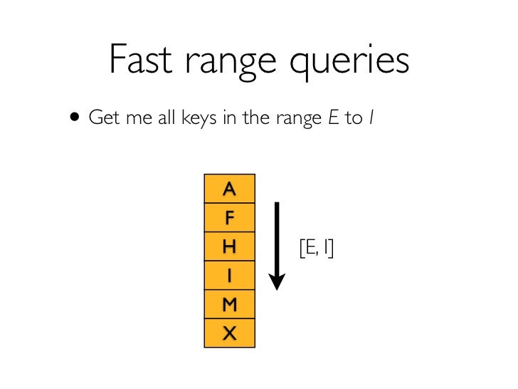 - 20. Fast range queries• Get me all keys in the range E to I A F H [E, I] I M X
