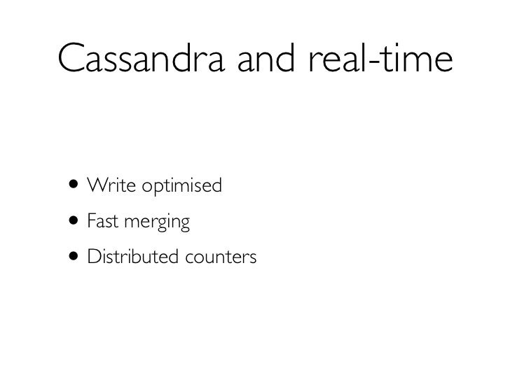 - 23. Cassandra and real-time• Write optimised• Fast merging• Distributed counters
