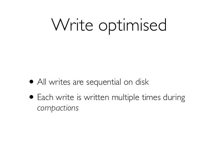 - 24. Write optimised• All writes are sequential on disk• Each write is written multiple times during compactions