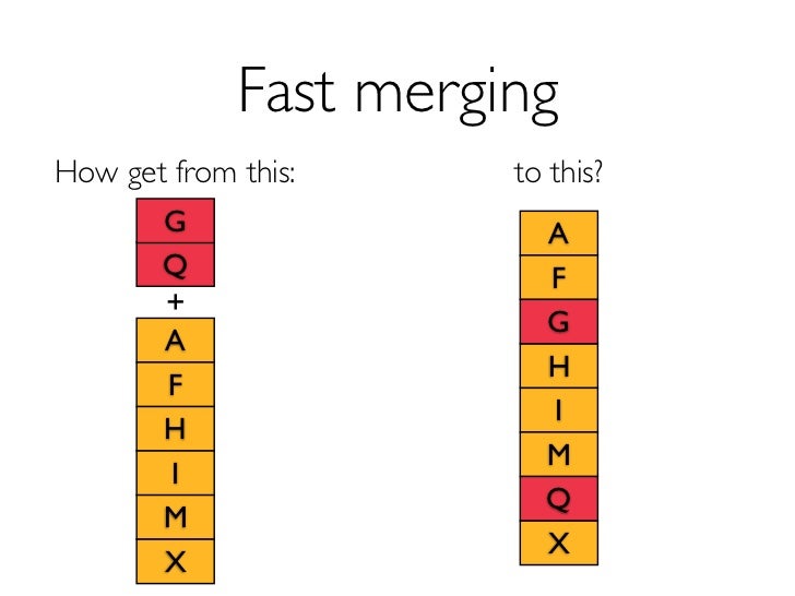 - 25. Fast mergingHow get from this: to this? G A Q F + G A H F I H M I Q M X X