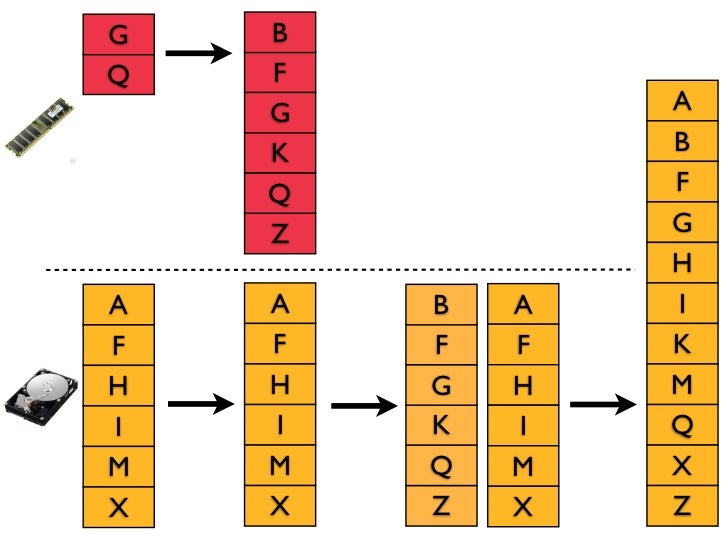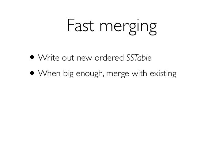 - 26. Fast merging• Write out new ordered SSTable• When big enough, merge with existing