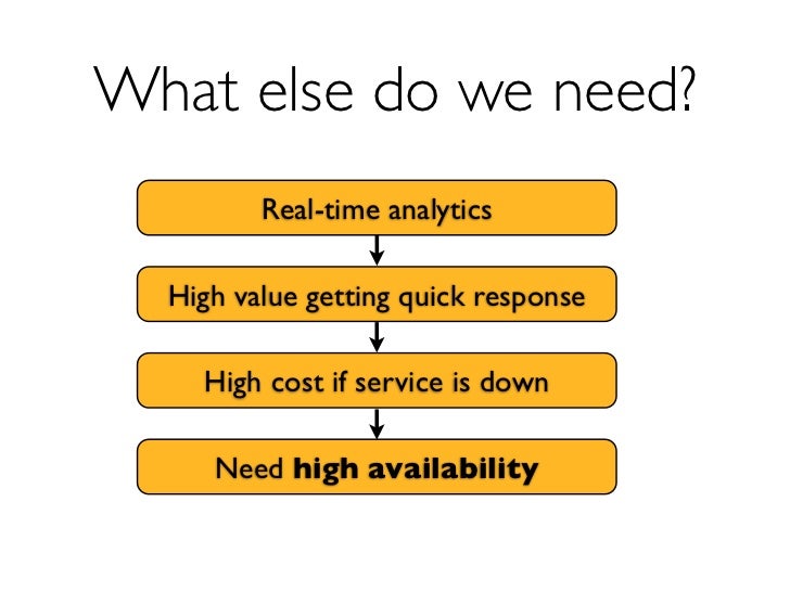 - 31. What else do we need? Real-time analytics High value getting quick response High cost if service is down Need high availability