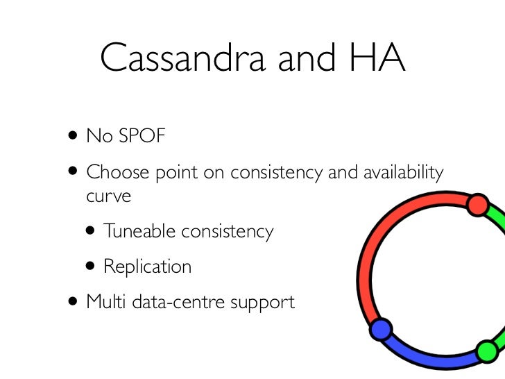 - 33. Cassandra and HA• No SPOF• Choose point on consistency and availability curve • Tuneable consistency • Replication• Multi data-centre support