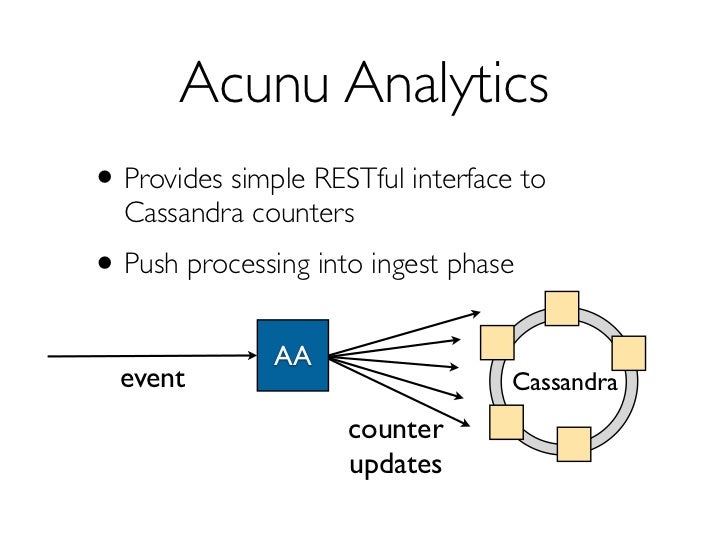 ![Acunu Analytics• Event template, e.g., select : ["COUNT", "AVG(loadTime)"], type : { time : [TIME(HOUR; MIN; S...](https://www.slideshare.net/acunu/realtime-cassandra)