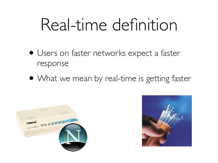 - 8. Real-time definition• Users on faster networks expect a faster response• What we mean by real-time is getting faster