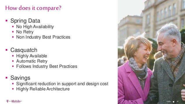- 18. 1818 Spring Data No High Availability No Retry Non Industry Best Practices Casquatch Highly Available Automatic Retry Follows Industry Best Practices Savings Significant reduction in support and design cost Highly Reliable Architecture How does it compare? Public