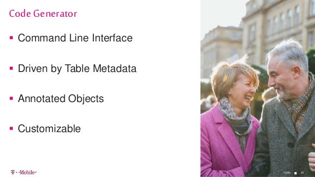 - 20. 2020 Command Line Interface Driven by Table Metadata Annotated Objects Customizable Code Generator Public