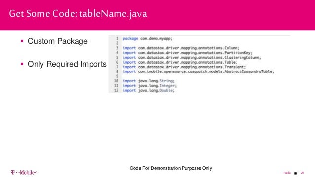 - 29. 29Public Custom Package Only Required Imports Get Some Code: tableName.java Code For Demonstration Purposes Only