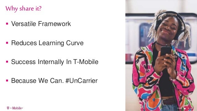 - 6. 66 Versatile Framework Reduces Learning Curve Success Internally In T-Mobile Because We Can. #UnCarrier Why share it? Public